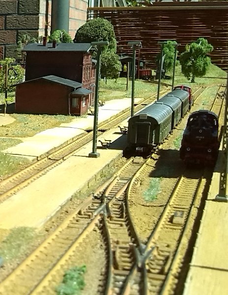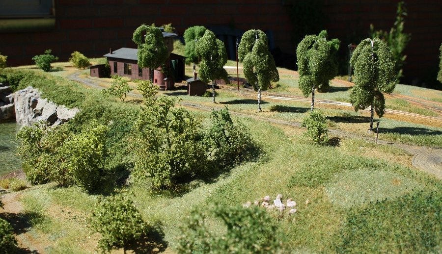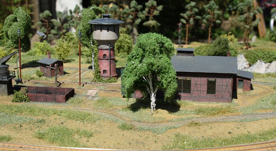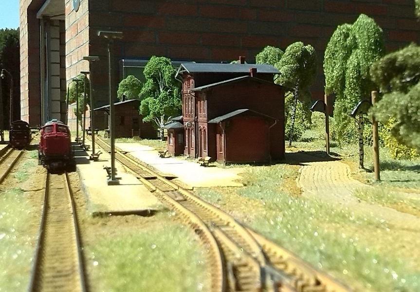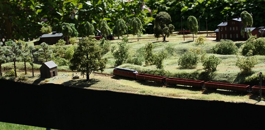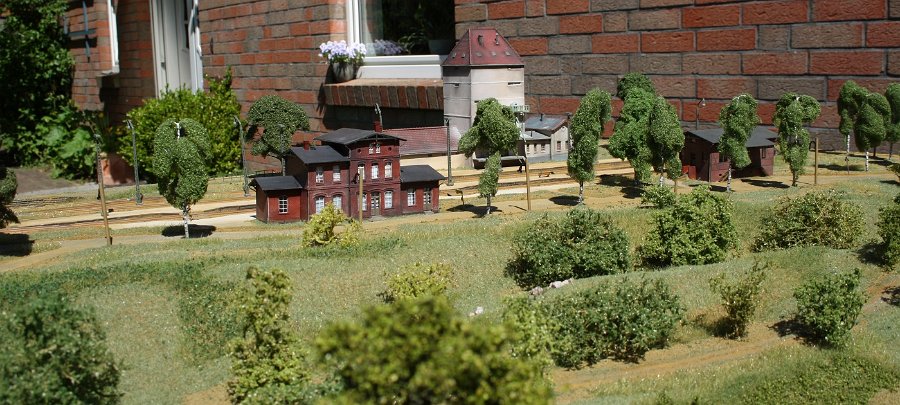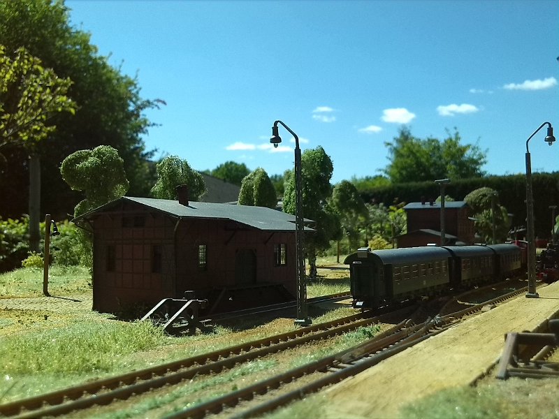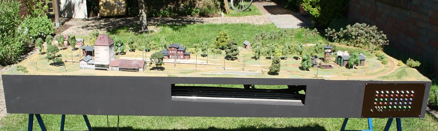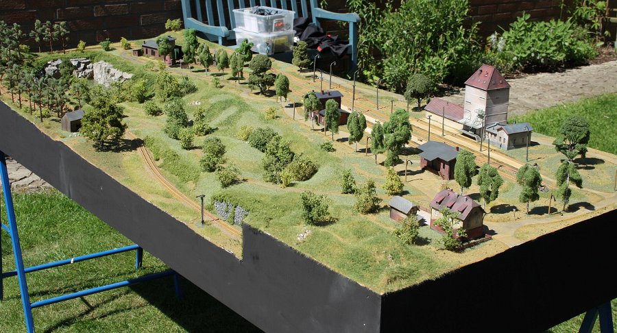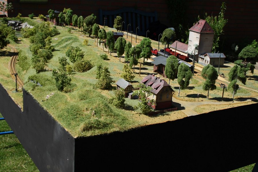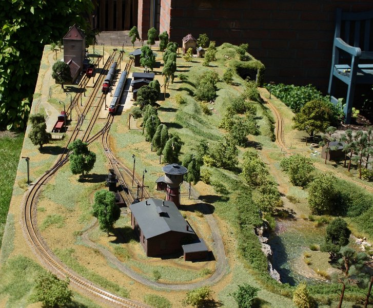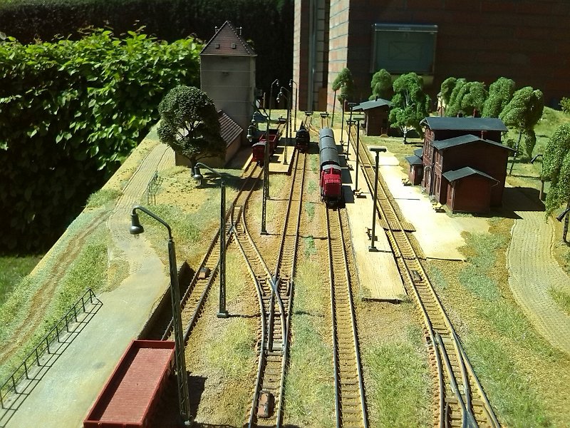 Auf Bitte eines Interessenten habe ich den kleinen Endbahnhof / P7 noch einmal gebaut. Etwas modifiziert und vor allen Dingen größer. 203 x 87 cm. Durch die Vergörßerung der Anlage, wurde das Gelände weitläufiger, großzügiger. Die Größe ermöglicht nun einen schönen Radius 3 hinauf zum Bahnhof, längere Gleise im Bahnhof sowie einen etwas größeren See.