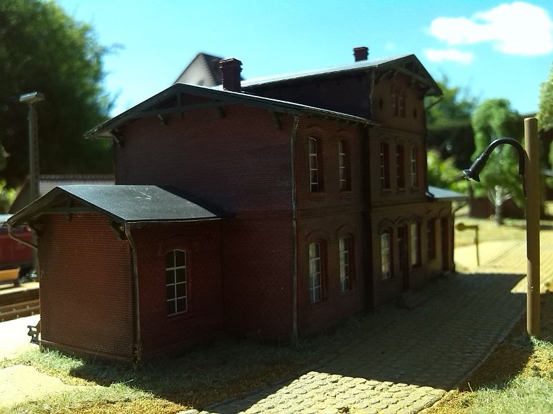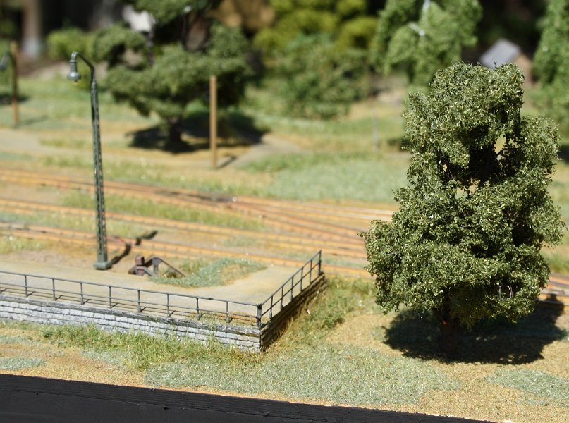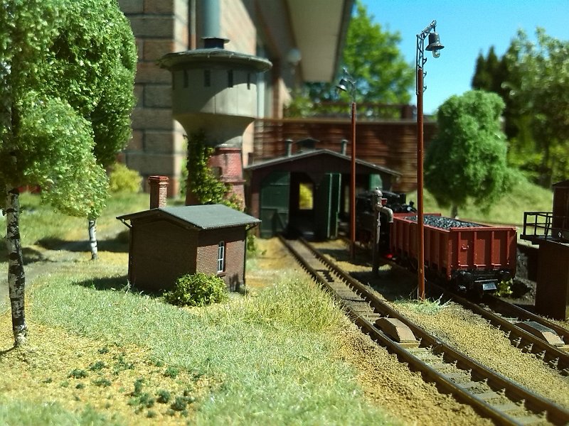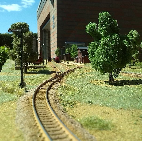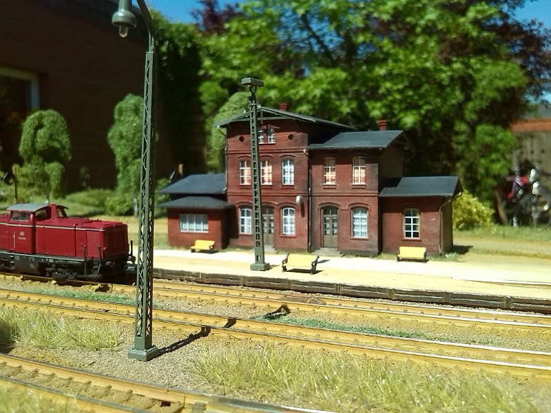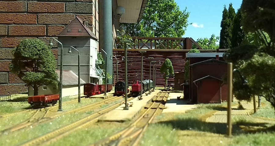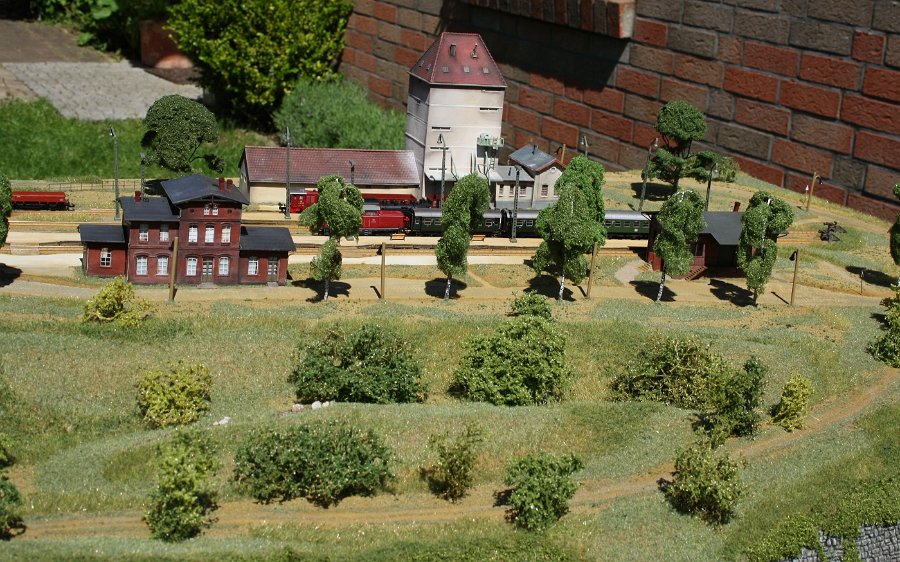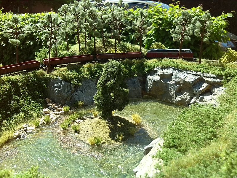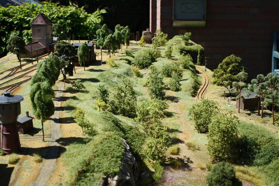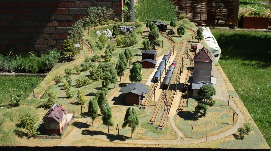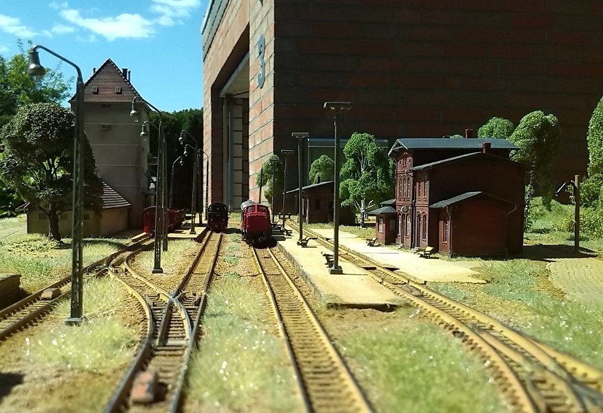 Auf Bitte eines Interessenten habe ich den kleinen Endbahnhof / P7 noch einmal gebaut. Etwas modifiziert und vor allen Dingen größer. 203 x 87 cm. Durch die Vergörßerung der Anlage, wurde das Gelände weitläufiger, großzügiger. Die Größe ermöglicht nun einen schönen Radius 3 hinauf zum Bahnhof, längere Gleise im Bahnhof sowie einen etwas größeren See.