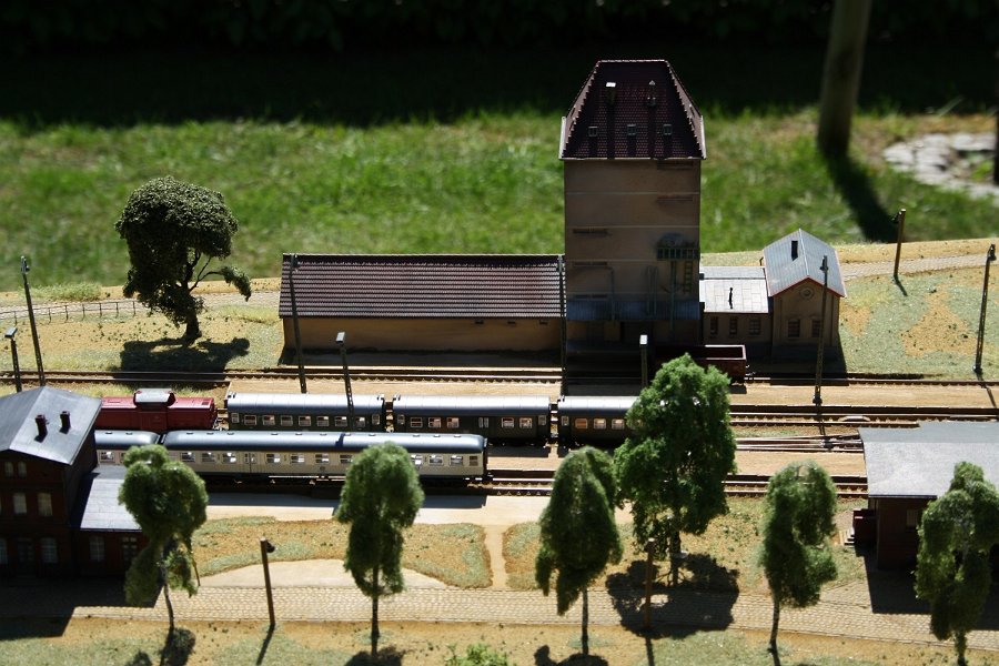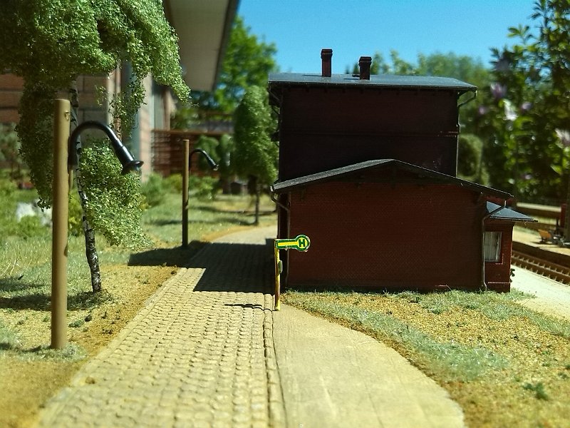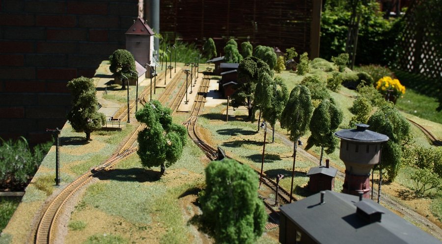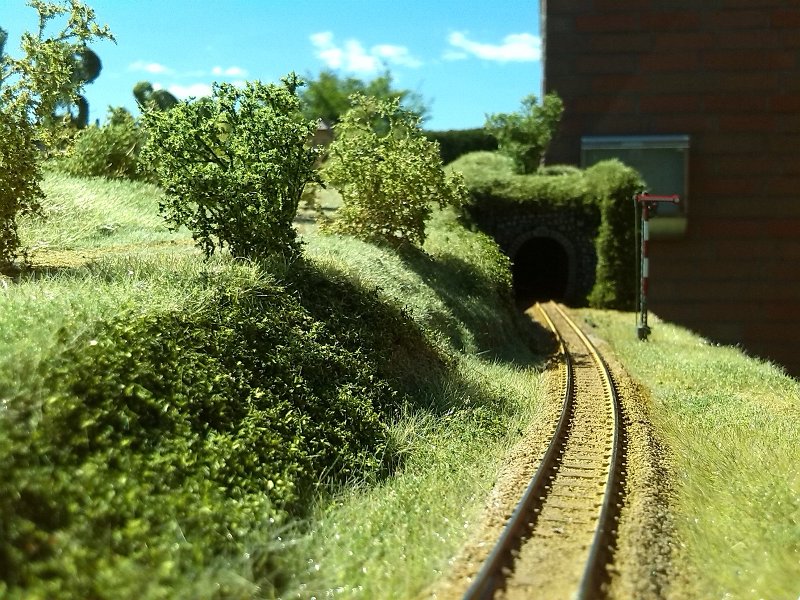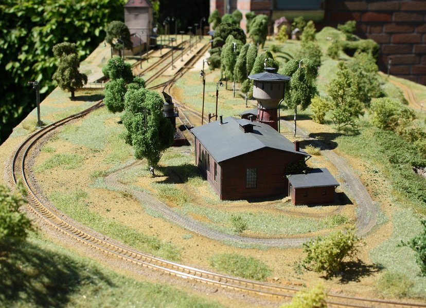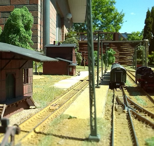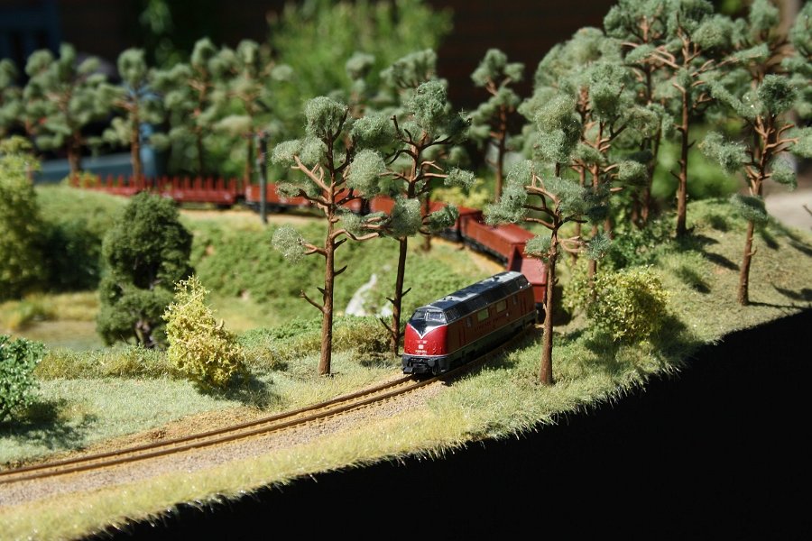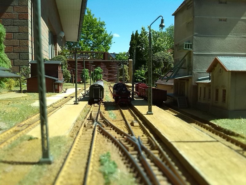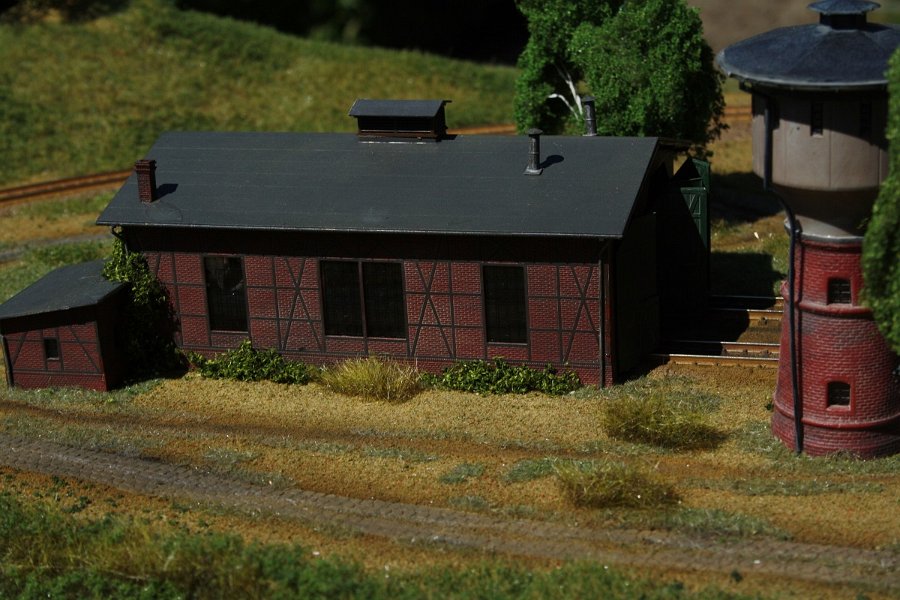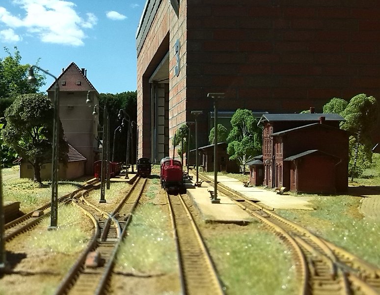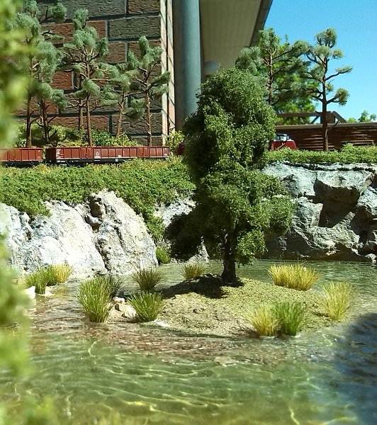 Auf Bitte eines Interessenten habe ich den kleinen Endbahnhof / P7 noch einmal gebaut. Etwas modifiziert und vor allen Dingen größer. 203 x 87 cm. Durch die Vergörßerung der Anlage, wurde das Gelände weitläufiger, großzügiger. Die Größe ermöglicht nun einen schönen Radius 3 hinauf zum Bahnhof, längere Gleise im Bahnhof sowie einen etwas größeren See.