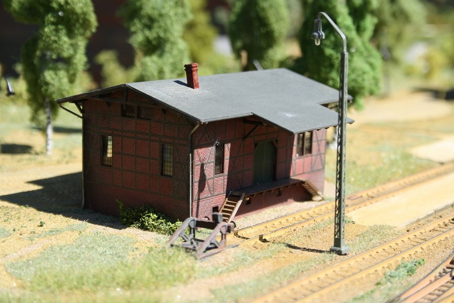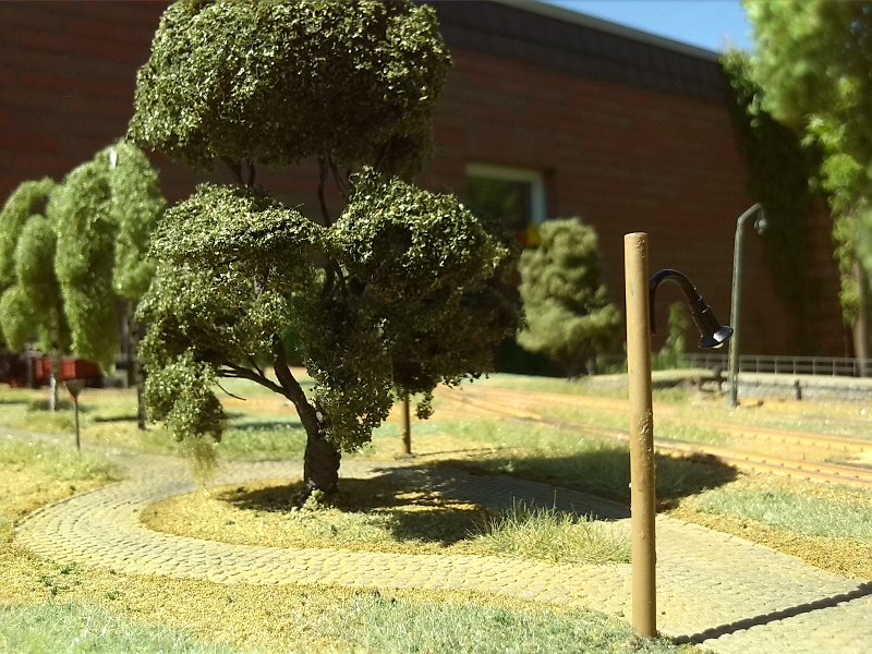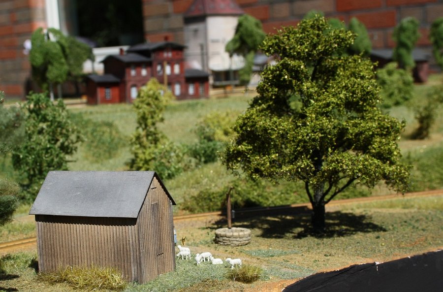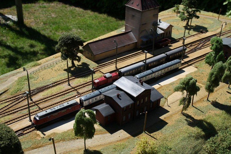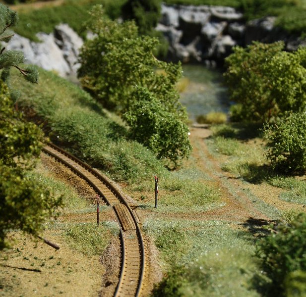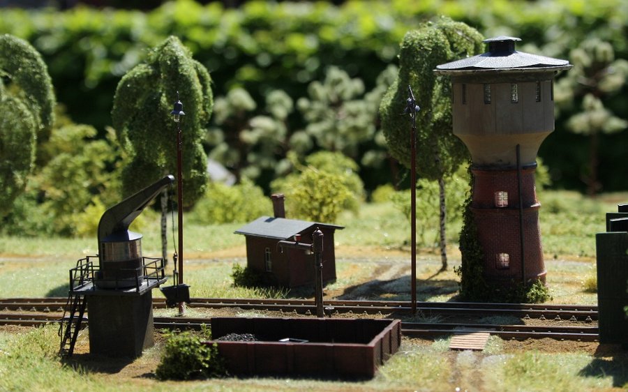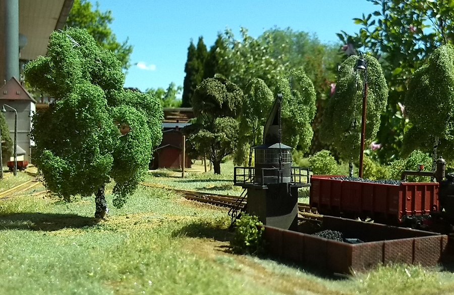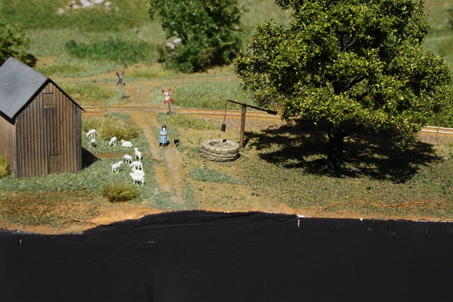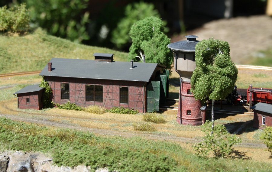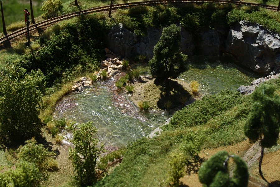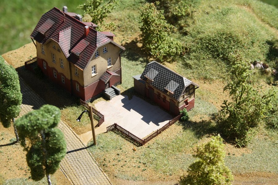 Auf Bitte eines Interessenten habe ich den kleinen Endbahnhof / P7 noch einmal gebaut. Etwas modifiziert und vor allen Dingen größer. 203 x 87 cm. Durch die Vergörßerung der Anlage, wurde das Gelände weitläufiger, großzügiger. Die Größe ermöglicht nun einen schönen Radius 3 hinauf zum Bahnhof, längere Gleise im Bahnhof sowie einen etwas größeren See.