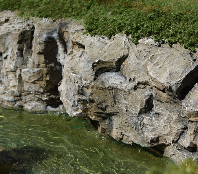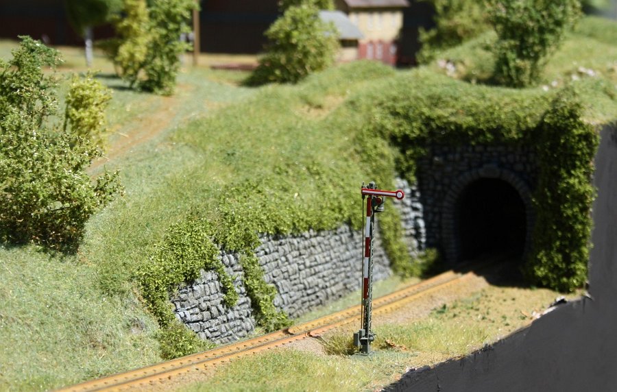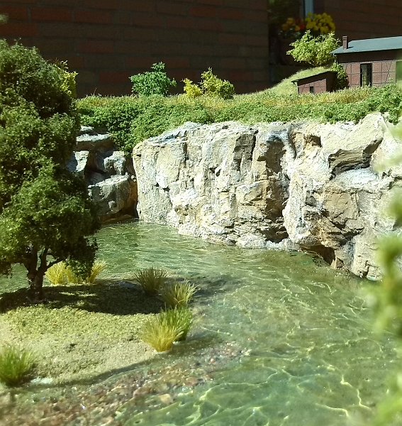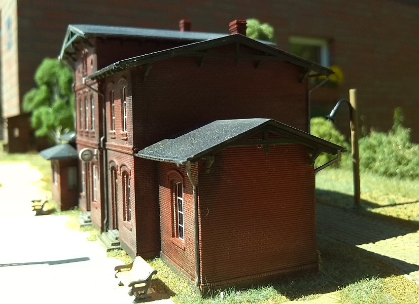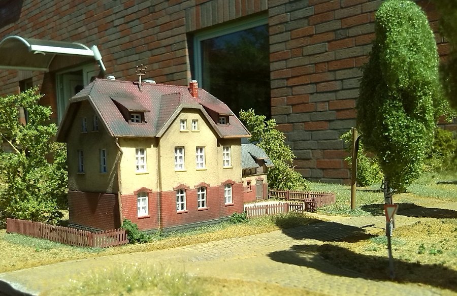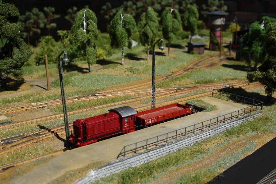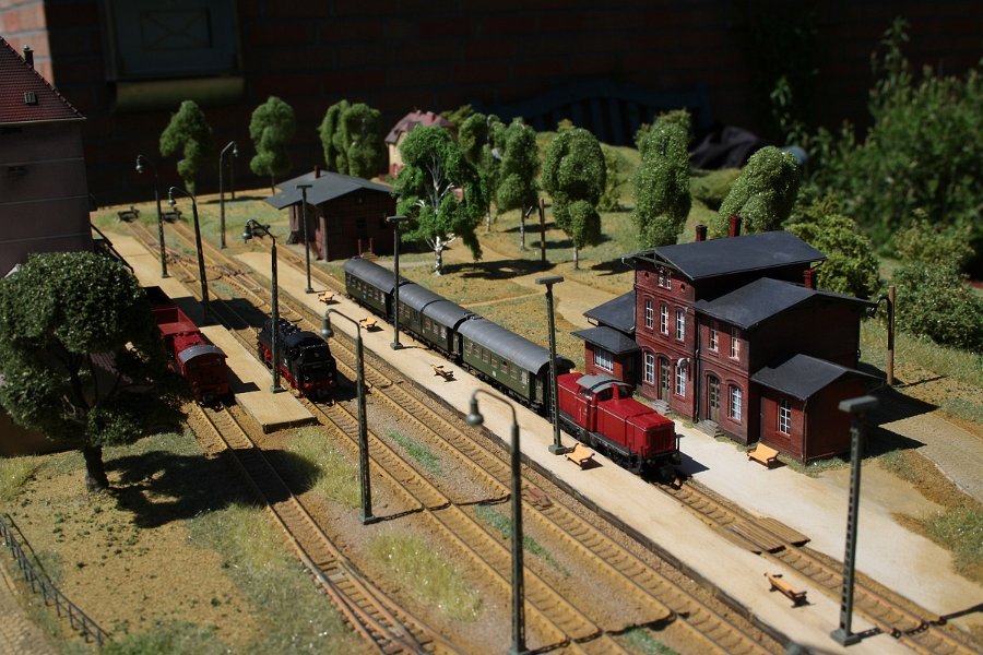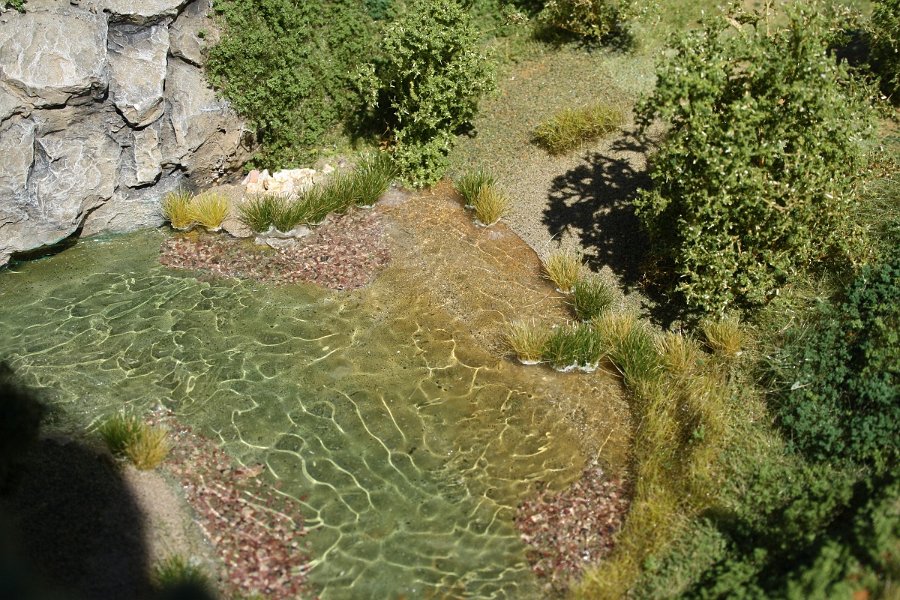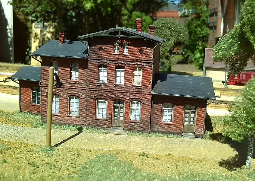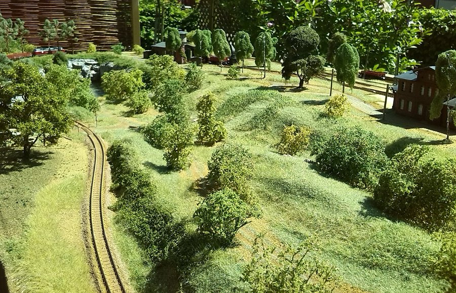 Auf Bitte eines Interessenten habe ich den kleinen Endbahnhof / P7 noch einmal gebaut. Etwas modifiziert und vor allen Dingen größer. 203 x 87 cm. Durch die Vergörßerung der Anlage, wurde das Gelände weitläufiger, großzügiger. Die Größe ermöglicht nun einen schönen Radius 3 hinauf zum Bahnhof, längere Gleise im Bahnhof sowie einen etwas größeren See.