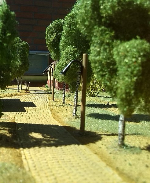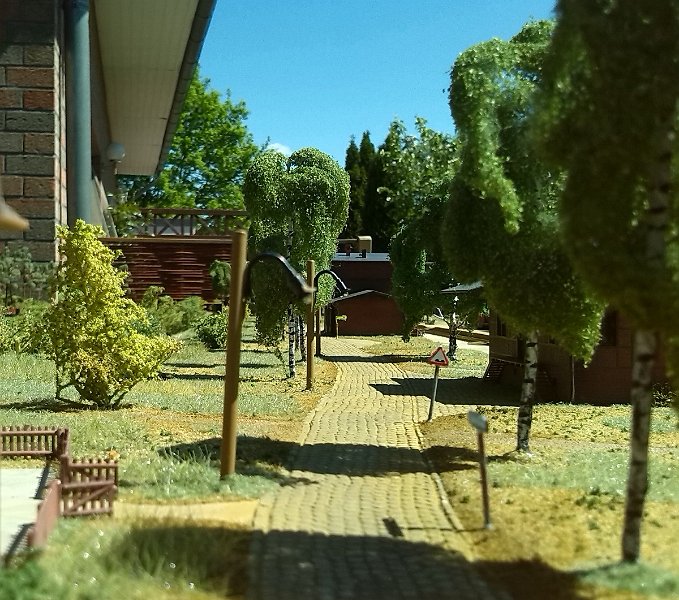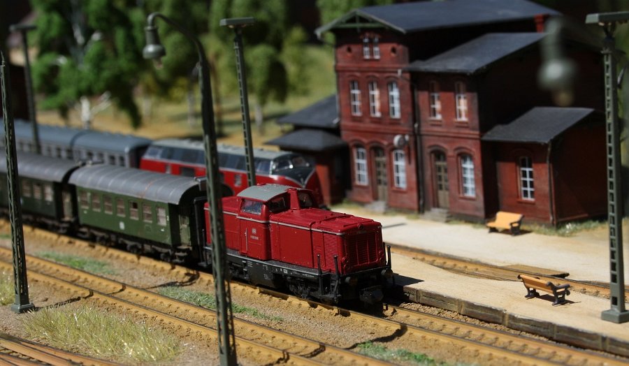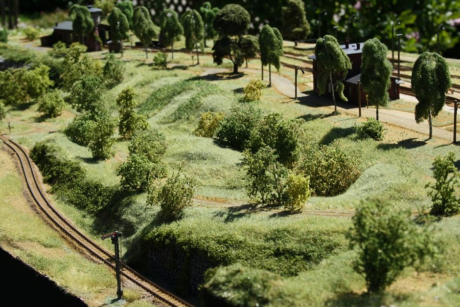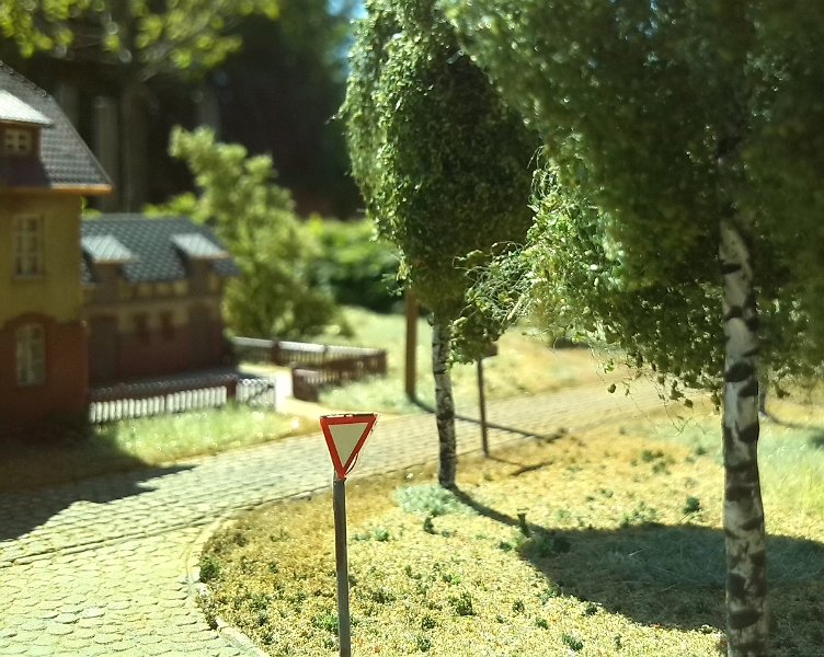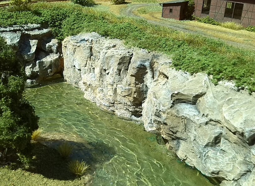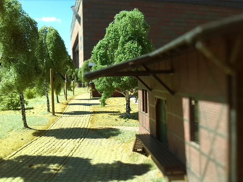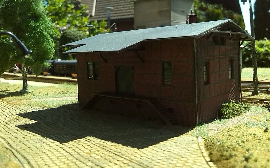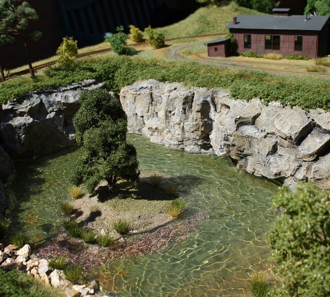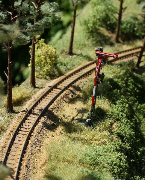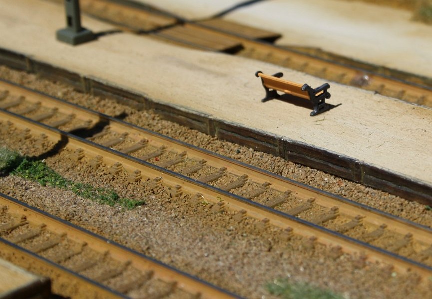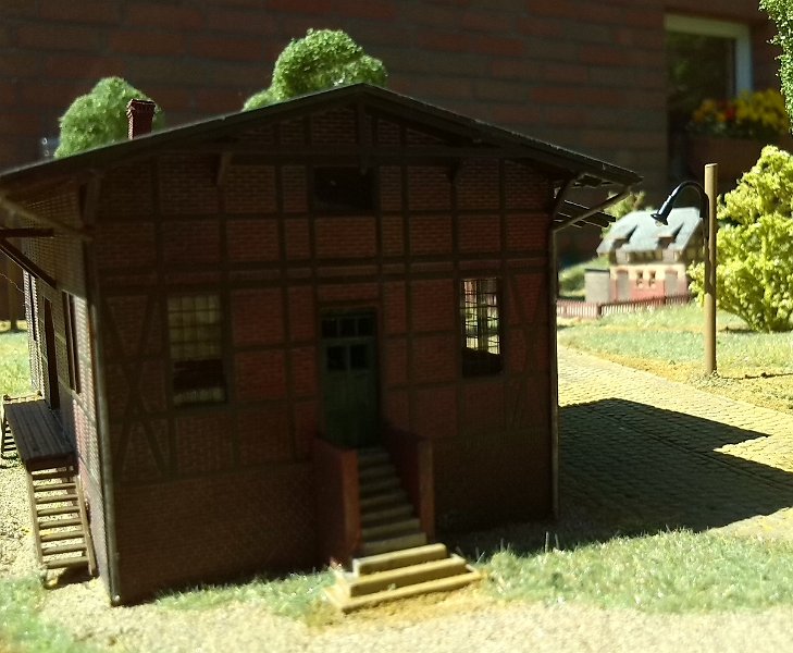 Auf Bitte eines Interessenten habe ich den kleinen Endbahnhof / P7 noch einmal gebaut. Etwas modifiziert und vor allen Dingen größer. 203 x 87 cm. Durch die Vergörßerung der Anlage, wurde das Gelände weitläufiger, großzügiger. Die Größe ermöglicht nun einen schönen Radius 3 hinauf zum Bahnhof, längere Gleise im Bahnhof sowie einen etwas größeren See.